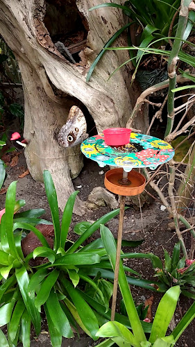 Superleuk. prachtige vlinders gezien. Wat een leuke locatie. We hebben zelfs even met de eigenaar gesproken die er vaak te vinden is met een papegaai op zijn schouder.. Hij weet echt heel veel van vlinders en van de vogels die er rondvliegen. Een echte liefhebber.